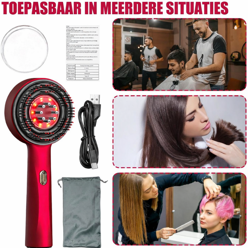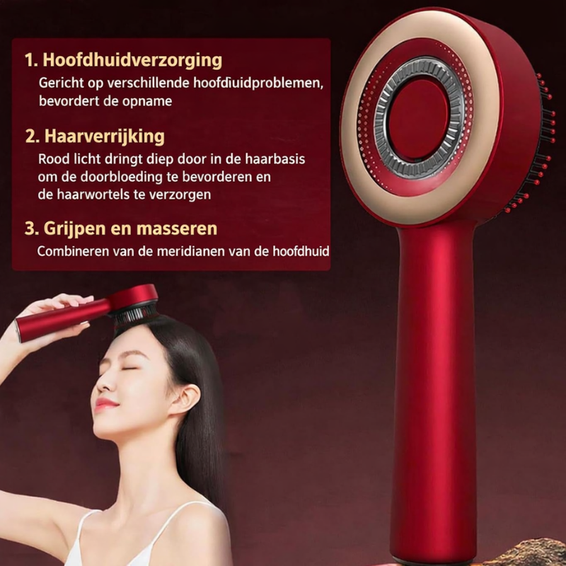 De ScalpCare Pro™ is jouw ultieme tool voor ontspanning, haargroei en een gezonde hoofdhuid. Deze elektrische scalp massager combineert diepe massage, rood licht therapie en automatische olieverdeling voor zichtbaar voller en sterker haar — gewoon vanuit huis.